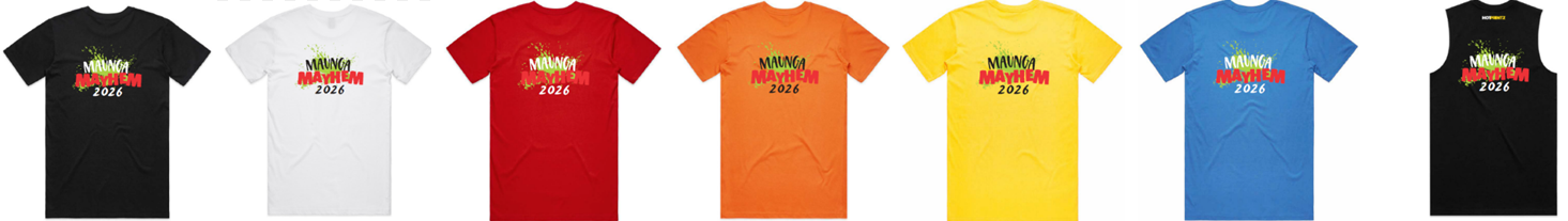 Maunga Mayhem Merchandise is available to purchase during the ticketing process.